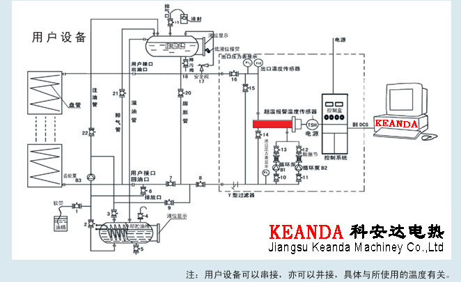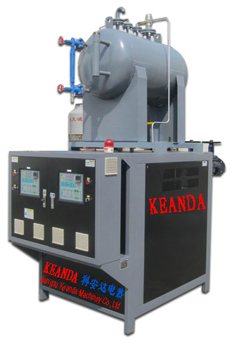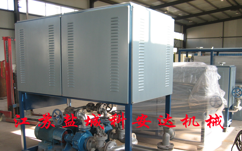 導(dǎo)熱油爐(又稱導(dǎo)熱油加熱器)是將是將電加熱器直接插入有機載體(導(dǎo)熱油)中直接加熱,利用循環(huán)泵,強制導(dǎo)熱油進(jìn)行液相循環(huán),將熱量傳遞給用一個或多種用熱設(shè)備,經(jīng)用熱設(shè)備卸載后,重新通過循環(huán)泵,回到加熱器,再吸收熱量,傳遞給用熱設(shè)備,如此周而復(fù)始,實現(xiàn)熱量的連續(xù)傳遞,使被加熱物體溫度升高,達(dá)到加熱的工藝要求。